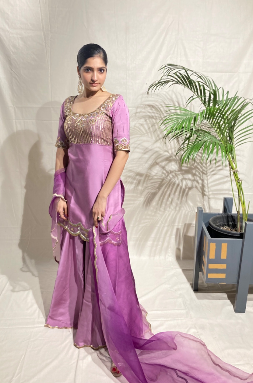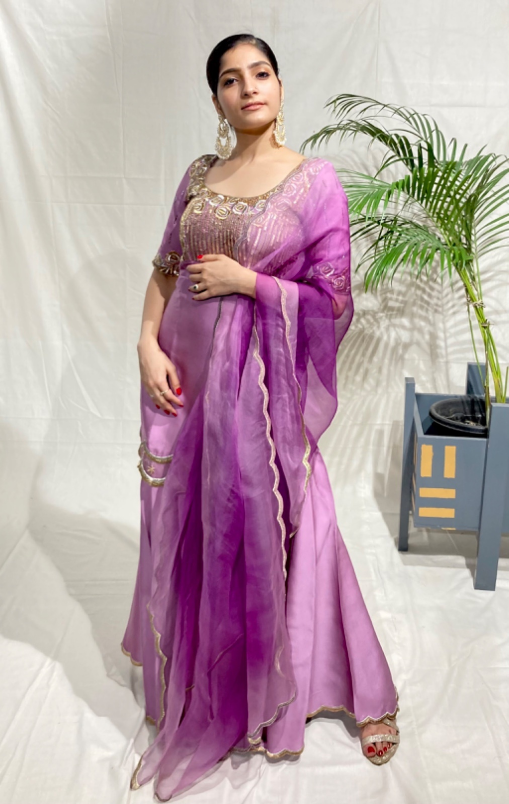 Designed for grand celebrations and unforgettable moments, this hand-embroidered suit set drapes with a soft, luminous grace. Perfect for weddings or high-end soirées—where making a statement matters.