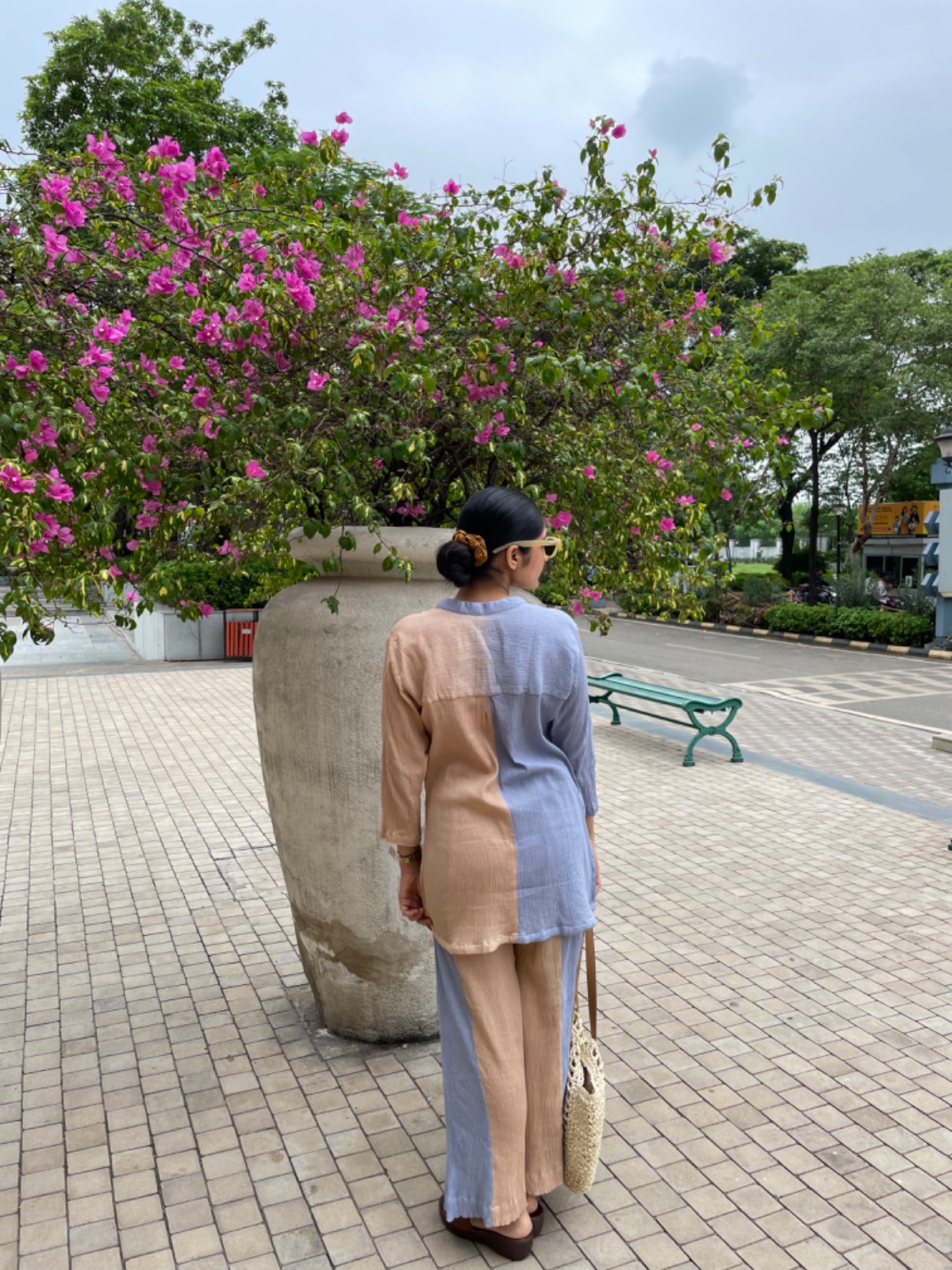 Our 100% cotton crush co-ord, crafted in a stunning dual-dyed hue, is all about comfort without the fuss. Designed as an ode to quiet opulence, this set is perfect for those who love understated elegance with ease.