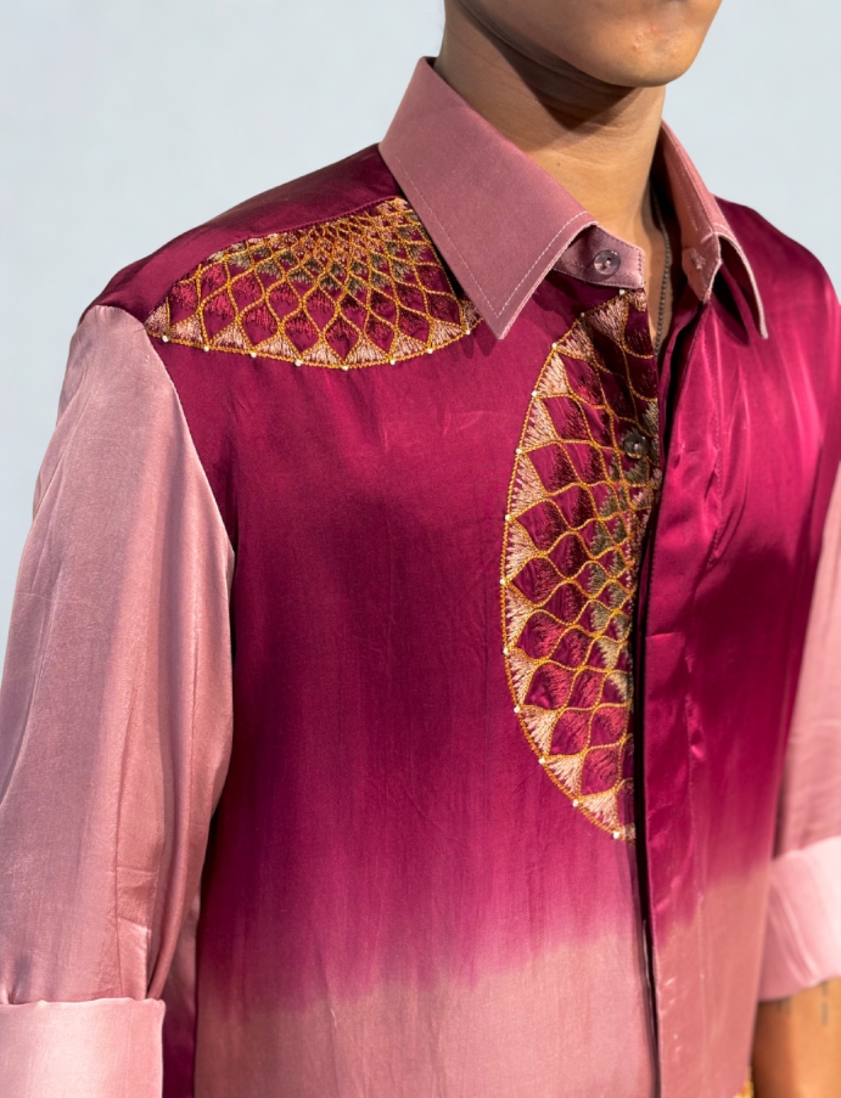 A luxurious shirt crafted from breathable fabric, finished with delicate hand embroidery. Effortlessly stylish, endlessly comfortable — perfect for the modern man who values detail and ease.